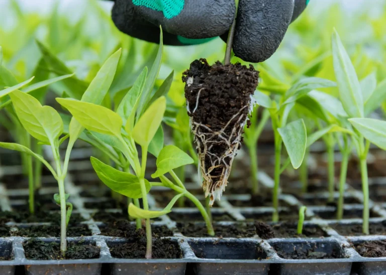 Healthy plant with white roots and lush green leaves, indicators of strong growth and proper organic gardening practices.